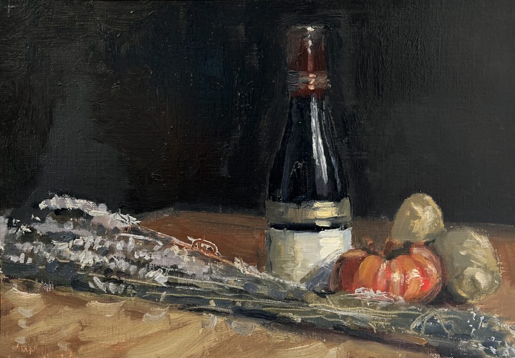 Son travail explore aussi bien les paysages — de Paris à la Bretagne, les campagnes d’île de France, en passant par la Touraine — que le portrait, le nu et des compositions issues de ses propres études préparatoires. Refusant l’usage de la photographie, il privilégie une relation immédiate au sujet, nourrie par le dessin, l’anatomie et une recherche constante de nouveaux lieux et situations.